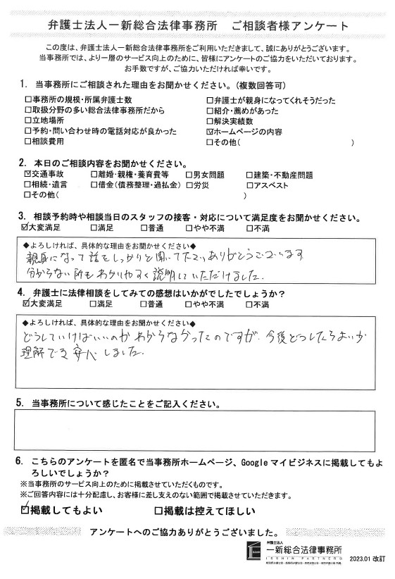 どうしていけばいいのかわからなかったのですが、今後どうしたらよいか理解でき安心しました。