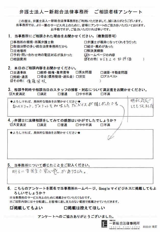 私のメリット、デメリットを紙したアドバイスが嬉しかったです。